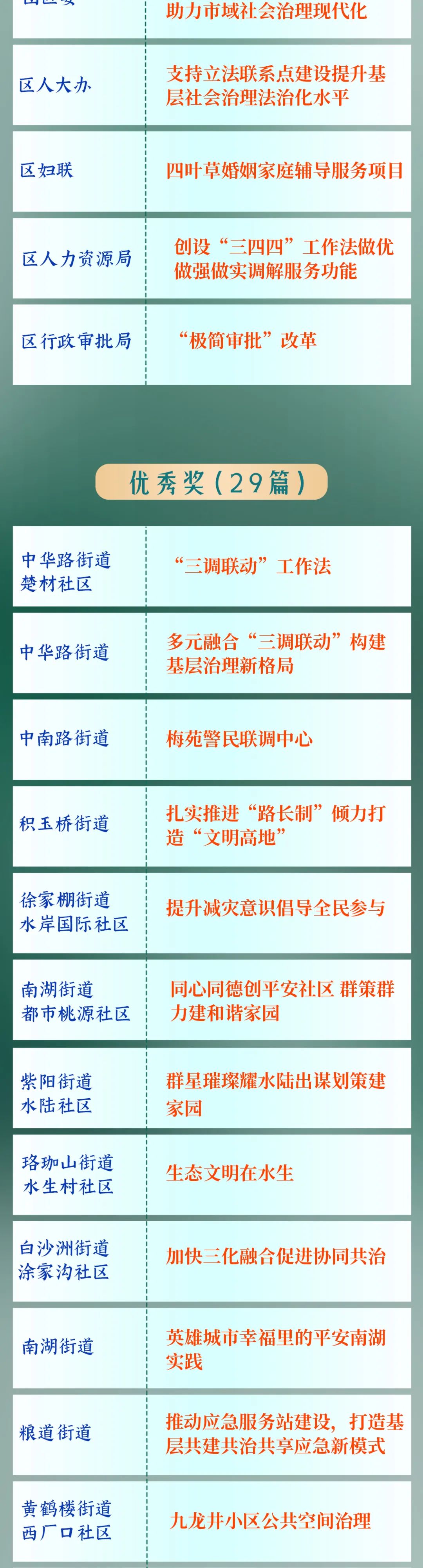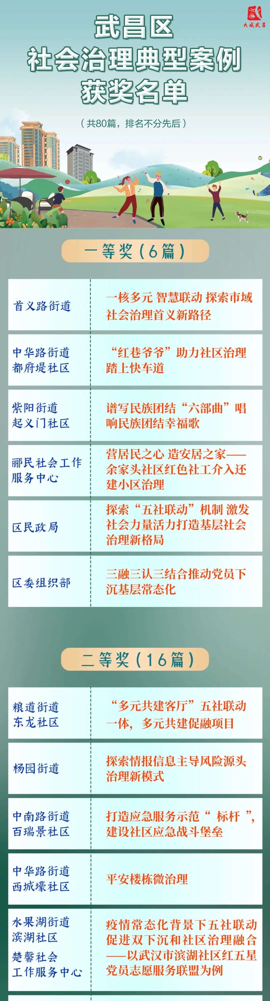 前不久,在武昌区组织的社会治理典型案例征集评选活动中,全区各区直部门、街道、群团组织和社区,踊跃报名、积极参与,共报送各类案例80篇。武昌区委政法委组织有关专家对报送的案例进行了严格评审,将51篇优秀案例汇编成集为《市域社会治理武昌区典型案例选编》。这些案例生动展现了武昌区社会治理的多层次、多面向和多路径,在理念思路、体制机制、方法手段等方面的创新探索实践。