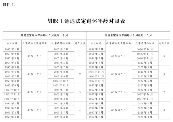 附件:1.男职工延迟法定退休年龄对照表
