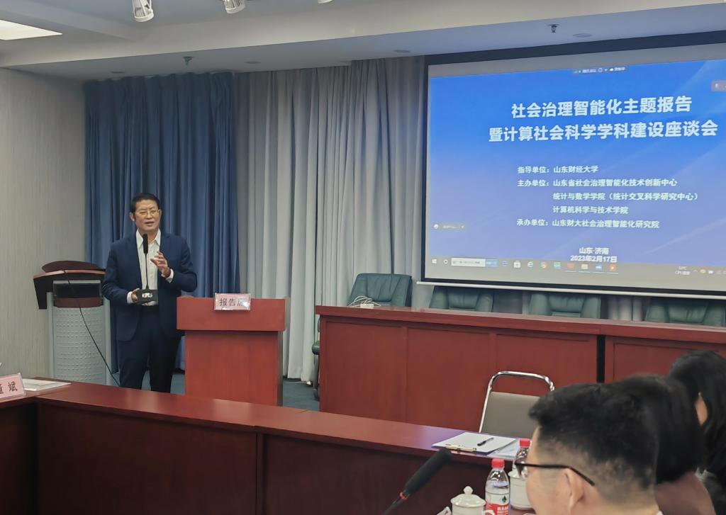 本网讯 2月17日下午,由山东财经大学指导,山东省社会治理智能化技术创新中心(以下简称创新中心)、统计与数学学院(统计交叉科学研究中心)、计算机科学与技术学院主办,山东财大社会治理智能化研究院(以下简称研究院)承办的社会治理智能化暨计算社会科学学科建设座谈会在济南天舜大厦召开。