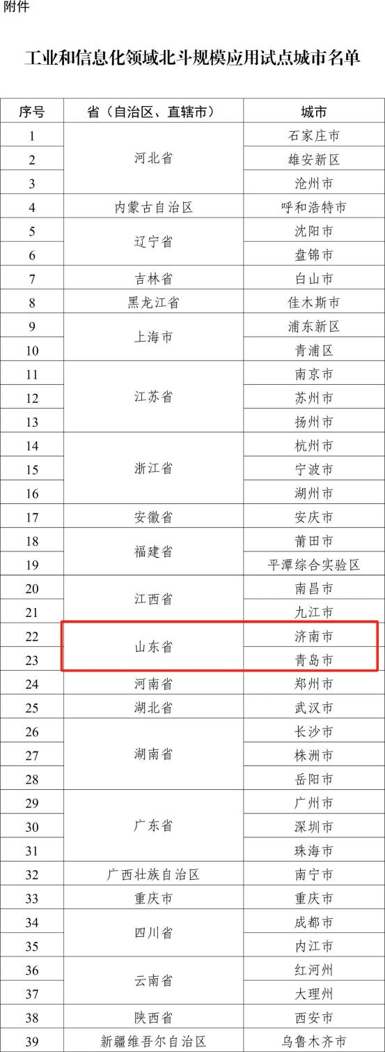 工业和信息化领域北斗规模应用,山东两市入选试点城市