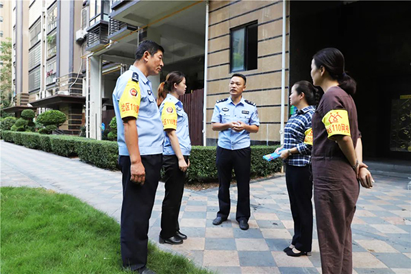“社区110”民警和网格员交流辖区综治网格服务管理情况