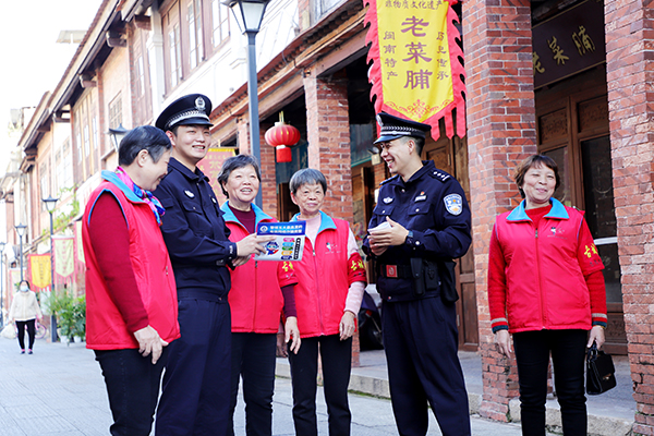 古厝边阿姨巡防队和民警开展反诈宣传