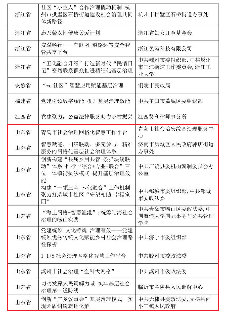 全国社会治理创新案例(2023)入选名单公示:山东12份案例榜上有名!