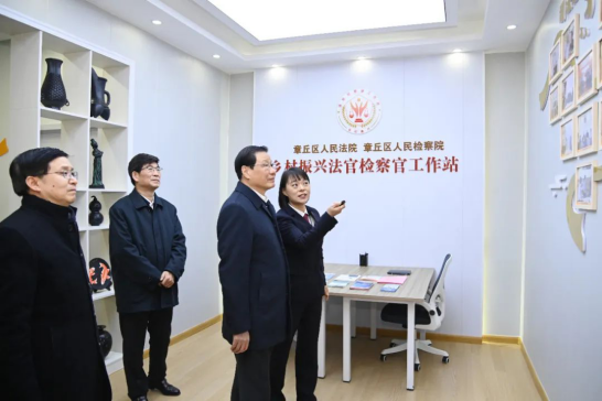 2月2日,最高人民检察院党组书记、检察长应勇率最高检调研组来到济南市章丘区三涧溪村乡村振兴法官检察官工作站调研。