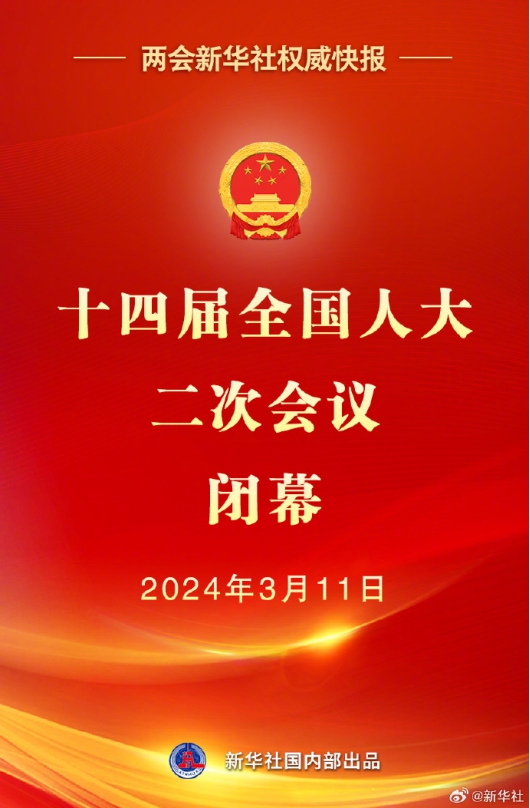 3月11日下午3时,十四届全国人大二次会议举行闭幕会,习近平等党和国家领导人出席。