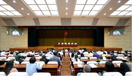 5月27日下午,省法院召开全体干警大会,传达学习习近平总书记视察山东重要讲话重要指示精神,认真落实省委常委会扩大会议、全省领导干部会议部署要求,研究贯彻落实措施,进一步将总书记的关心厚爱转化为推动法院工作发展的强劲动力。省法院党组书记、院长霍敏主持会议并讲话。