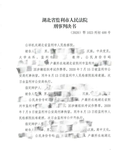 最高人民法院近日发布依法惩治组织考试作弊犯罪典型案例,湖北法院审理的“陈某等人组织考试作弊、非法获取国家秘密案”入选。法治日报全媒体记者从湖北法院了解到该案详情:作为监考人员的一名80后老师联合高校大三在校生和一名高中毕业生共同组织实施。