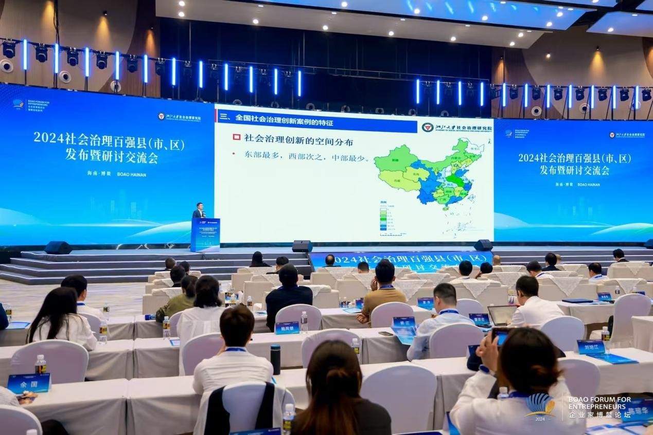 作为“2024企业家博鳌论坛”智库主论坛系列论坛之一,近日2024社会治理百强县(市、区)发布暨研讨交流会在海南博鳌举行。来自政府、学界的社会治理领域众多领导和专家学者齐聚一堂,共同探讨我国县域社会治理的最新进展与创新路径。