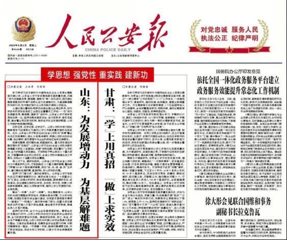 学习贯彻习近平新时代中国特色社会主义思想主题教育开展以来,山东省公安厅紧紧围绕服务高质量发展,开展“我为发展献良策、解难题、建新功”等一系列活动,把开展主题教育激发的热情干劲转化成为发展增动力、为基层解难题的实际行动,在中国式现代化山东实践中展现公安担当。
