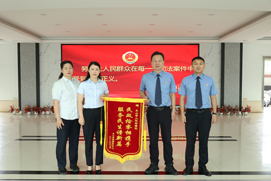 东山县婚姻登记中心向东山县检察院送来“民政检察相携手 服务民生谱新篇”的锦旗