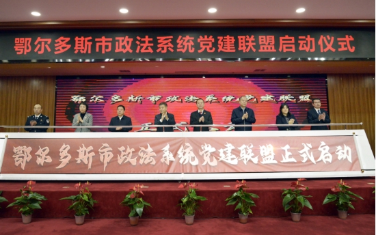 鄂尔多斯市委政法委会同市公安局、检察院、中级人民法院、司法局、信访局,有机整合各成员单位党建阵地、专业人才等资源,组成鄂尔多斯市政法系统党建联盟,合力改变各单位党建工作“单打独斗”局面,形成横向有效沟通和联结。