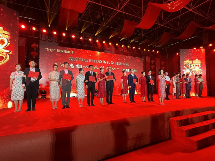 朔州市隆重举行“不忘初心永结同心”主题婚礼仪式,来自政法、武警、税务、教育、保险等不同行业的十对新人深情朗读民法典中关于婚姻家庭的相关内容,倡导成婚、成人、成家、成业“四成之礼”,新人家长通过视频连线深情寄语,嘱托新人传承优良家风,传递家庭责任,通过不懈努力创造美好生活。朔州市司法局组织工作人员在活动现场为前来参加活动的各位宾客发放民法典、《民法典与百姓生活100问》、《民法典·婚姻家庭编》等法律文本,将法治元素融入婚礼各环节,营造沉浸式普法学法婚礼场景,呈现了一场婚庆与法治结合的文化盛宴。