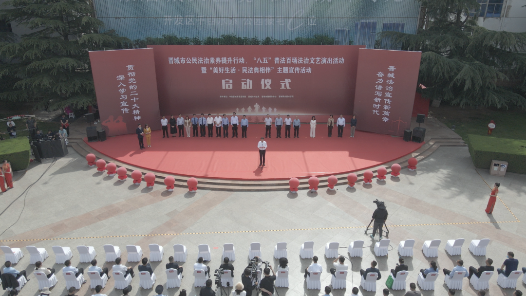 晋城市委宣传部、市司法局、市融媒体中心、晋城职业技术学院共同举办了晋城市公民法治素养提升行动、“八五”普法百场法治文艺演出活动暨“美好生活·民法典相伴”主题宣传活动,将法治宣传融入到舞蹈、音舞快板、歌剧、小品、诗朗诵等表演形式中,生动形象、趣味性十足地传递宪法、民法典等各领域的法律知识,潜移默化提升群众法治素养、营造社会法治氛围。