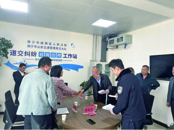 今年3月,城西区法院联合西宁市公安交通管理局五大队成立的全省首个“道交纠纷诉源治理工作站”,充分发挥了道交纠纷的“过滤器”作用,城西区法院受理的道交纠纷案件同比下降26.03%,道交纠纷实质性化解效果显著。