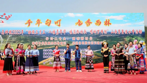 图为西林县马蚌镇举行2023年“壮族三月三•八桂嘉年华•桂滇黔欢歌•唱响万峰湖”山歌赛暨泼水节活动