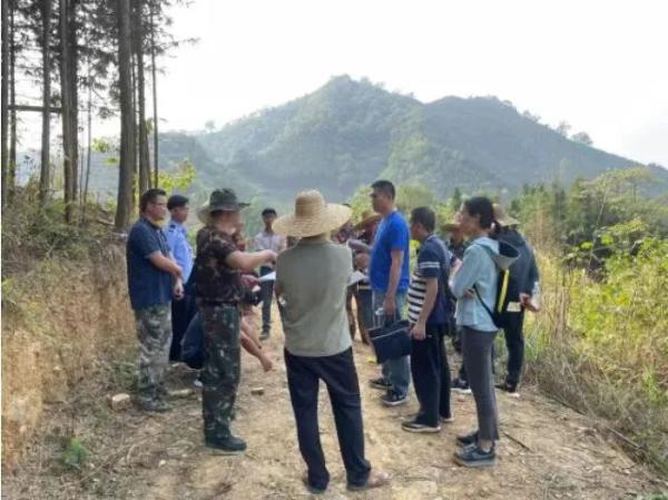 图为广西西林县古障镇、云南广南县坝美镇联合调解委员会实地调解古障镇昌房屯与坝美镇者洪小组的水源纠纷