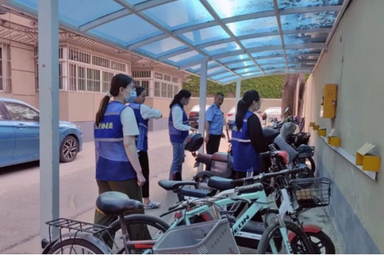 社区民警与治安协理员共同开展电动车“飞线充电”整治行动