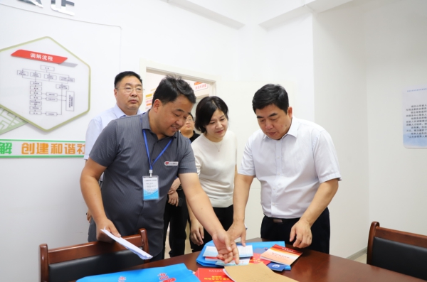 赵福龙实地调研了小区调解室、镇街“一站式”矛调中心、古营集镇零售行业调委会、曹县正达工艺品有限公司调委会、社区调委会、大集镇电商行业调委会会等调解组织的建设及运行情况;听取了县司法局和各镇街关于人民调解工作的情况汇报;仔细查看了人民调解工作台账及卷宗等资料;详细了解了各调解组织在工作模式、人员配备、制度建设、工作创新等方面的具体情况。赵书记在实地查看和听取汇报后,充分肯定了全县人民调解工作取得的成绩,认为我县人民调解工作成效实、亮点多,尤其是对基层调解组织全覆盖工作做出了重点表扬。