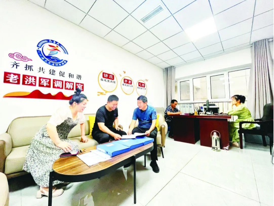 走进齐河县一站式矛盾纠纷调解中心,首先映入眼帘的就是镶嵌在服务台上的“只进一扇门,最多跑一地”这几个红色的大字。在这个办公面积达2200余平方米的县一站式矛盾纠纷调解中心,进驻着工商联、妇联、法院、检察院、公安、司法等15个部门,受理信访接待、劳动纠纷、金融保险等事项。中心还根据行业领域发展需求,以婚姻家庭、劳动争议、退役军人、道路交通、物业等领域为重点,成立县级行业性专业性调解委员会17个、行政调解委员会18个,其中齐河县工商联与县法院沟通联络共建机制建立以来共调解成功案件46起,涉案金额近亿元,获全国工商联、最高法联合通报表彰。齐河还按照做优县级、做强乡镇、做实村社的思路,在15个乡镇(街道)依托综治中心,融合司法所、派出所、信访办、人民法庭等多方力量实体化运行,实现乡级调解中心标准化建设全覆盖;社区调解中心依托党群服务中心等阵地,发挥社区书记、退休干部、党员、乡贤、网格员的作用,开展调解工作。这几天,齐河县综治中心矛盾调处管理股股长赵辉只要有空就会到各个乡镇、社区矛盾调解中心,与相关负责人商讨聚拢资源打造各具特色的矛盾调解品牌,他介绍:“我们鼓励全国模范人民调解员、全省调解能手、优秀律师以及基层一线调解能手成立个人品牌调解工作室,打造‘齐为民’系列调解品牌,以品牌建设引领社会治理质效全面提升。”