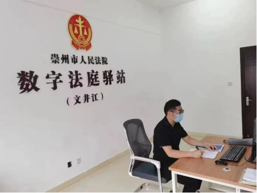 崇州法院法官通过数字法庭和当事人进行远程庭审