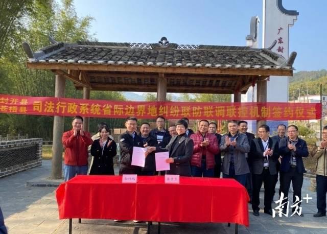 封开、苍梧两地司法局在大洲社区两广界碑处举行省际边界地纠纷联防联调联控机制签约仪式