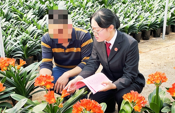 村居法官走进花棚,帮助花农把好法律关