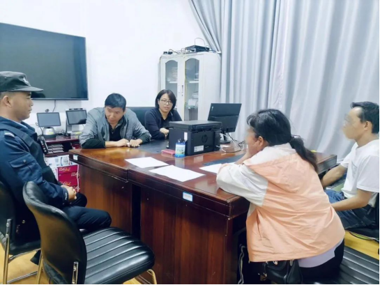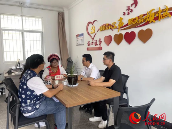 2023年8月4日,和立峰(左二)在调解一起家庭婚姻纠纷。受访者供图