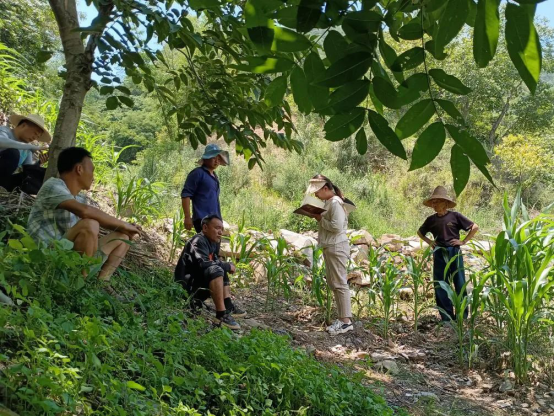 2023年7月18日,两家村民发生土地方面的纠纷,李江女(右二)在记录情况。受访者供图