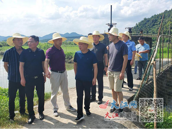彬江镇党委书记严子文(左四)和镇班子成员深入村组调研