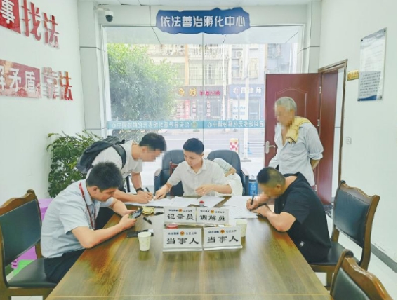 人民调解员在县矛盾纠纷多元化解协调中心主持调解纠纷