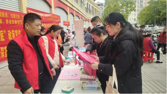 金城江街道新时代文明实践所志愿者向群众发放禁毒、反邪教宣传资料