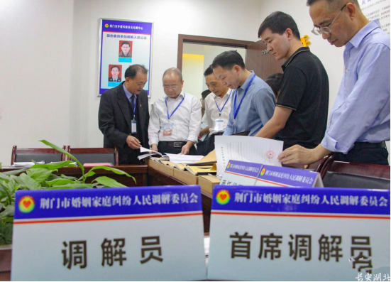 宣传调研团在荆门市矛盾纠纷多元化解中心查看调解记录