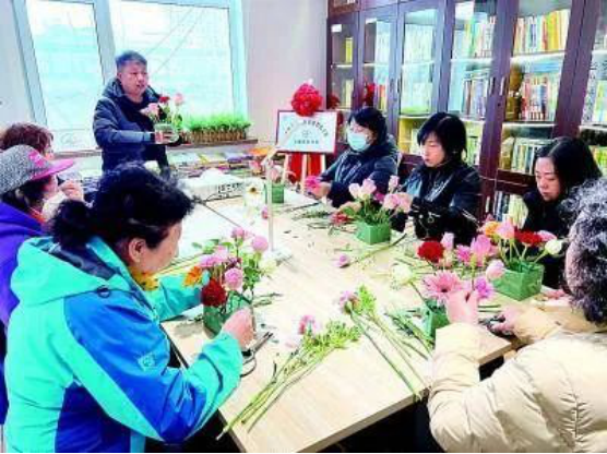 沈阳市溪林社区居民学习插花技艺。资料图片