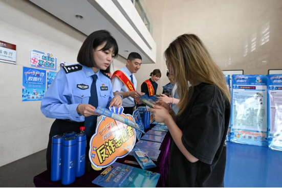 2023年5月23日,民警在天津师范大学指导学生下载反诈App。新华社记者 孙凡越 摄