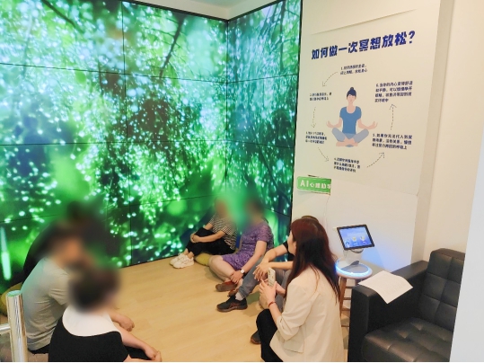 近日,黄埔区社矫对象在司法社工的陪同下参观了某AI多模态心理应用龙头企业建设的心理疗愈AI展厅,亲身体验了冥想放松、AI心理疏导机器人、AI运动宣泄、AI线上陪伴等一系列创新心理疗愈服务。