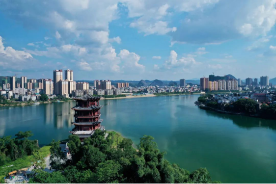 无人机航拍的融安县城段美景。(谭凯兴 摄)