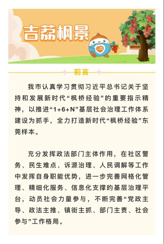 广东省东莞市委政法委打造“吉荔枫景”“旗峰义勇”“阳光明媚”等具有东莞特色的宣传栏目,推动大量鲜活的政法故事在网络刷屏,持续擦亮“东莞政法”宣传品牌,为法治东莞、平安东莞建设营造良好宣传舆论氛围。
