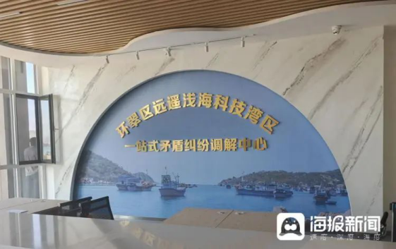 除了海上工作,环翠区还设置了环翠区远遥浅海科技湾区“一站式”矛盾纠纷调解中心,整合融合湾区警务工作站、综治中心、诉调对接工作站、法学会工作站以及海上枫桥环翠实践展厅、品牌调解室、渔业办等工作场所及职能,推动矛调中心最大程度与政务服务、便民服务、党群服务等工作深度融合。