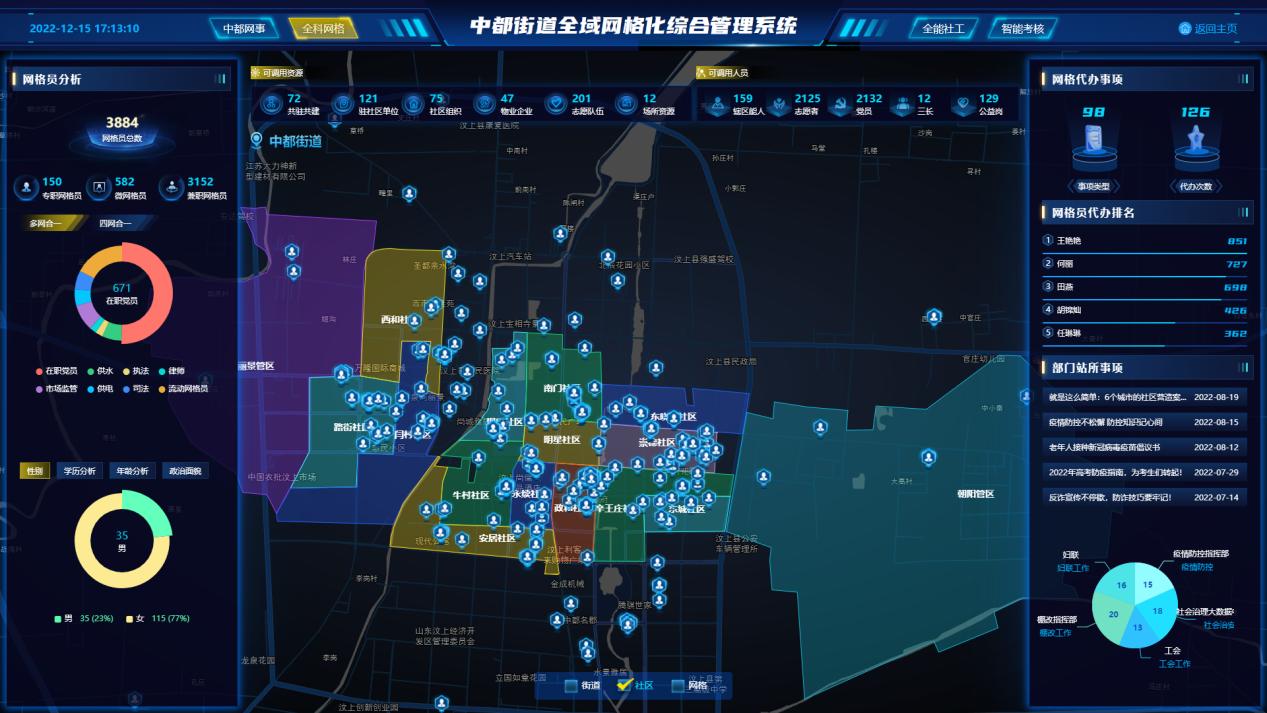 以党建为引领,优化城乡网格设置,社区工作者和专职网格员密切配合,实现了城区网格专职网格员全覆盖,并细分划定“微网格”3994个,使基层治理更加科学、精准。