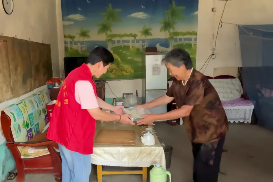 山东省临沂市莒南县团林镇北泉子二村微网格员为老年村民送水饺