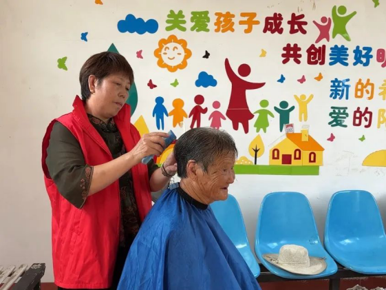 山东省临沂市莒南县团林镇党支部领办志愿服务队志愿者为老年人提供免费理发服务