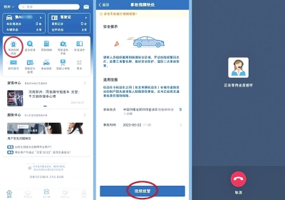 二是“视频指导处理”:当事人点击“视频报警”后等待公安机关交通管理部门后台人员接听,接听后进入视频通话。后台人员通过视频指导当事人在事故后方来车方向做好警示提醒,防止发生二次事故;通过视频查看事故现场,在线采集双方当事人基本信息,在线拍摄事故现场照片,固定相关证据。在视频处理过程中,当事人持手机可以切换前后摄像头,配合公安机关交通管理部门完成现场取证。对不符合视频快处条件的事故,通知辖区民警前往处置。