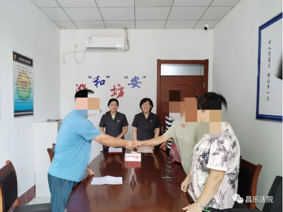 为打破僵局,平息各方当事人的情绪,闫文丽根据案件实际情况给各方当事人算了一笔账,原告为打官司请的律师费用、鉴定14棵杨树的价值需要支出的鉴定费用,各方当事人跟着勘查现场及出庭应诉还需要支出的交通费等等,这些费用已经远远超出了14棵杨树本身的价值。闫文丽适时给当事人播放了公安民警的出警录像,告知他们虽然现场已经恢复为耕地,但出警时树桩子还在地里,通过录像完全可以数清楚,即便如树经纪人和砍伐人所述按地块定价,如果定价显失公平也是应当予以纠正。调解工作进行到这里,各被告从一开始应诉时的“言辞激昂”到现在的低头沉思,调解工作已经到了“火候”,闫文丽语重心长地和当事人拉起了家常,引导各当事人从诉讼成本、时间成本、邻里关系、损失合理性等多方面考虑。经前期走访,闫文丽了解到原告张某和被告刘某是多年邻居,以往关系很好,两名伐树经纪人也都是同村村民,闫文丽又从情理入手,劝解各当事人:就因为伐树错误,让14棵树毁了几十年的邻里情,真的是得不偿失,并列举了“一封家书只为墙,让他三尺又何妨”六尺巷的典故。经过一上午的调解,讲清了法理、说透了情理,最终原、被告决定各让一步,四个被告自愿共同承担原告张某的损失,张某也自愿放弃误工费、律师费、交通费等其他损失,各方当事人在承办法官的见证下握手言和。