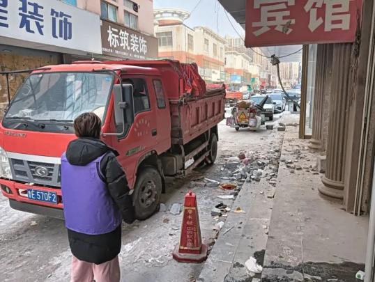 近日,东营市东营区商贸园管理服务中心十三网格的网格员葛莹娜在片区巡查过程中,突然听到“砰”的一声,顺着声音抬头望去,发现是二楼商户正在往楼下扔废弃木板,楼下车辆行人来来往往,存在较大安全隐患。